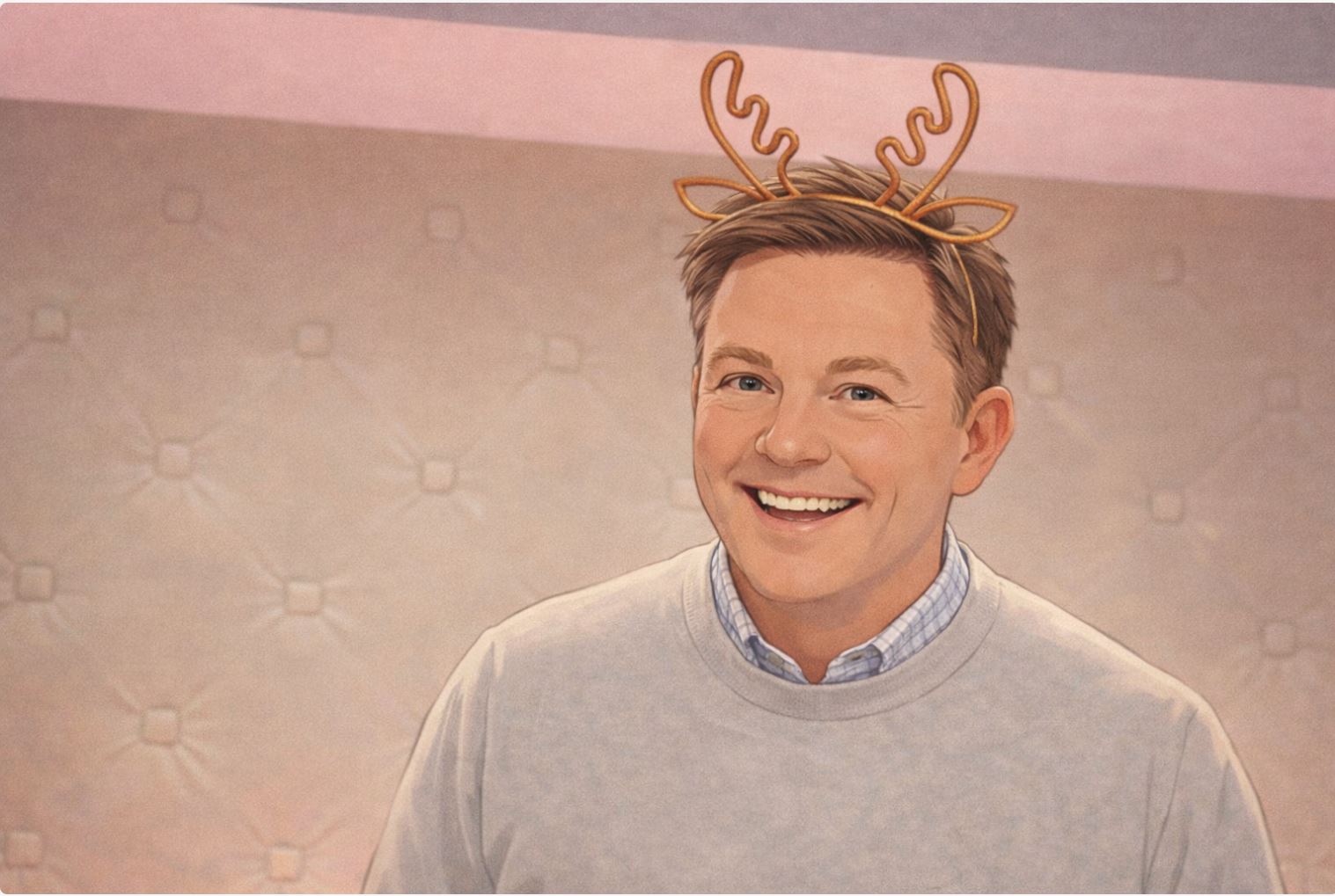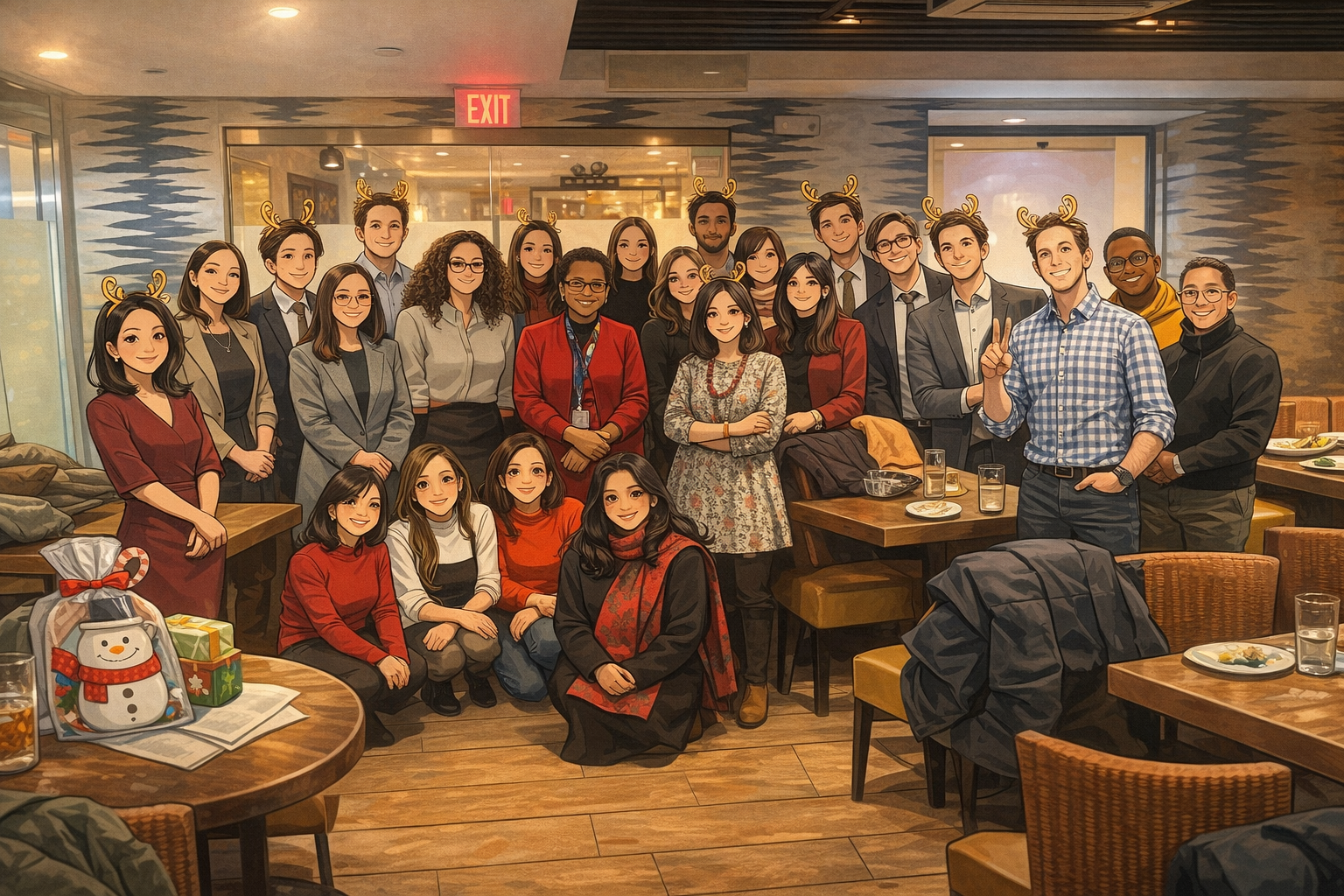 루돌프 머리띠를 쓴 부서장. 연말은 때때로, 직급을 잠시 내려놓게 만든다.