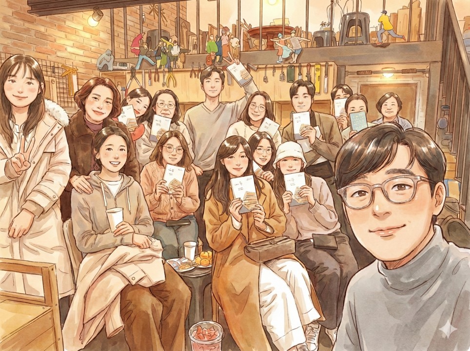 북토크의 중반을 넘어서자, 작가는 참석자들에게 공유하고 싶은 이야기가 있다면 무엇이든 말해보라 했다. 곧 누군가 손을 번쩍 들었고 자신의 경험담을 풀어놓았다. 그는 눈을 반짝이며 ‘삶이 완전히 달라졌다’라며 입을 열었다. 업무 회고를 글쓰기 모임처럼 운영해 직업적 도움을 받기도, 최근엔 글쓰기 모임을 운영해 소소하게 돈을 버는 경험도 했다고 말했다.