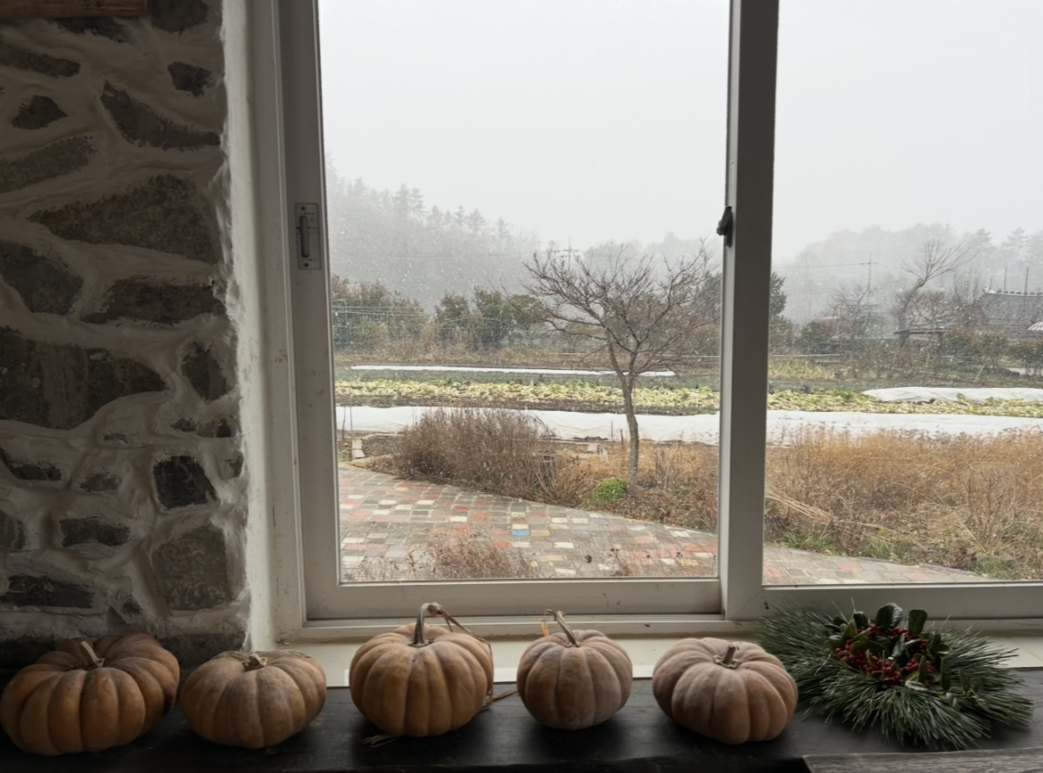아이들 겨울 방학이 시작되었다. 크리스마스 날, 지금 이곳은 눈이 내리고 있다. 겨울에 눈 구경하기 어려운 남쪽 지방에 살고 있다 보니 이렇게 실제로 눈을 보는 건 정말 오랜만이다. 점점 세게 부는 바람에 눈송이들이 마구 휘감겨 어지럽게 날아다녔다. 작고 가벼운 몸짓으로 어느새 온 세상을 하얗게 만드는 걸 보면서 그동안 일상을 살아내느라 분주했던 시간들이 순간 멈춘 것 같았다.